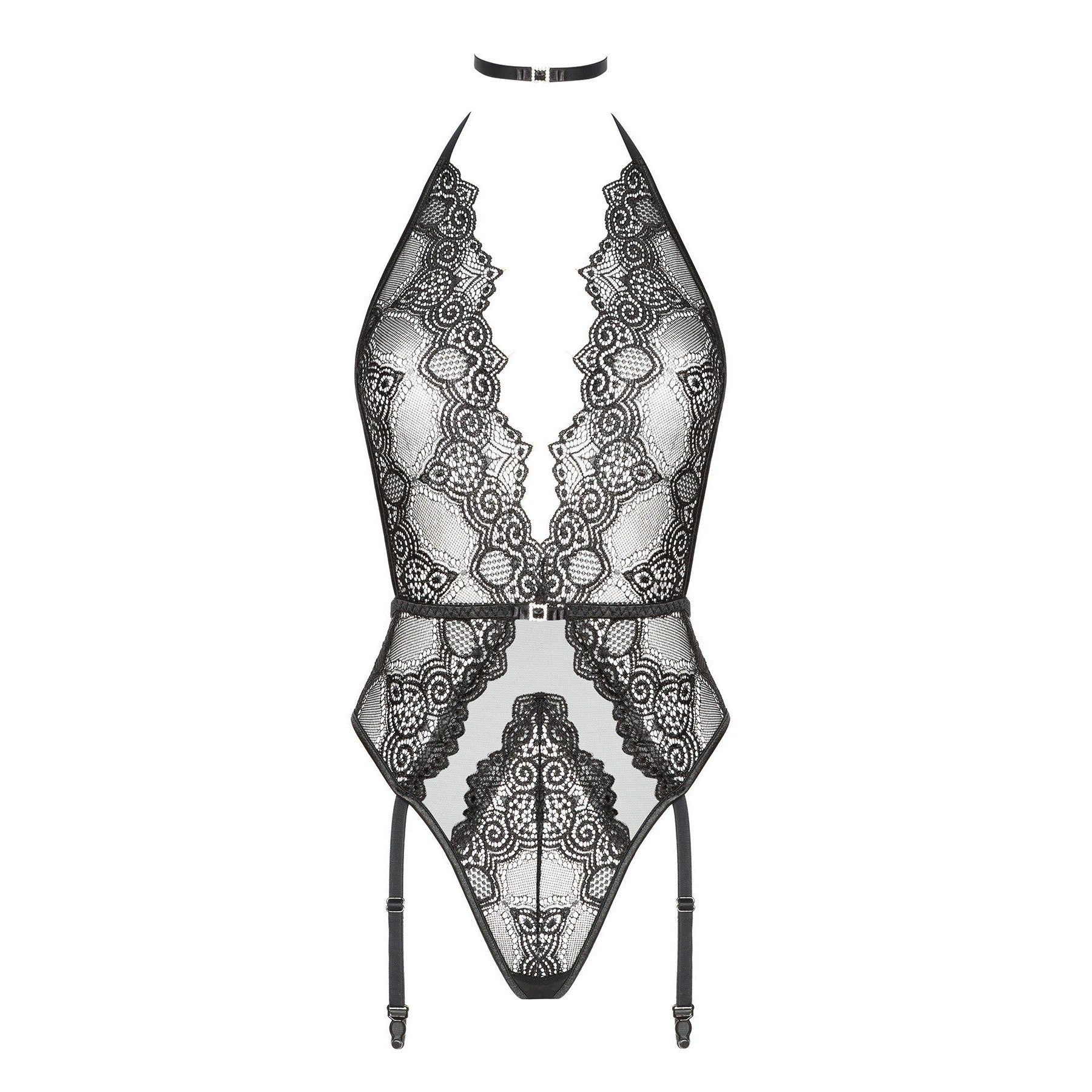 The set includes a chic neck choker adorned with a shiny application, adding a touch of sophistication to your ensemble. Designed for those special occasions, this delicate yet bold bodysuit is sure to leave a lasting impression.