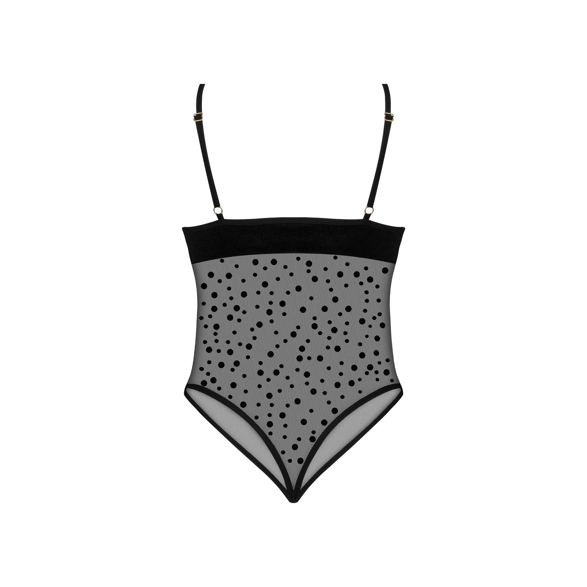 The Amalia Teddy is a seductive bodysuit that combines delicacy and sensuality. Made from transparent mesh adorned with playful dots, it perfectly highlights feminine curves. The model features sexy cutouts around the bust, adding spice and unique character to it.
