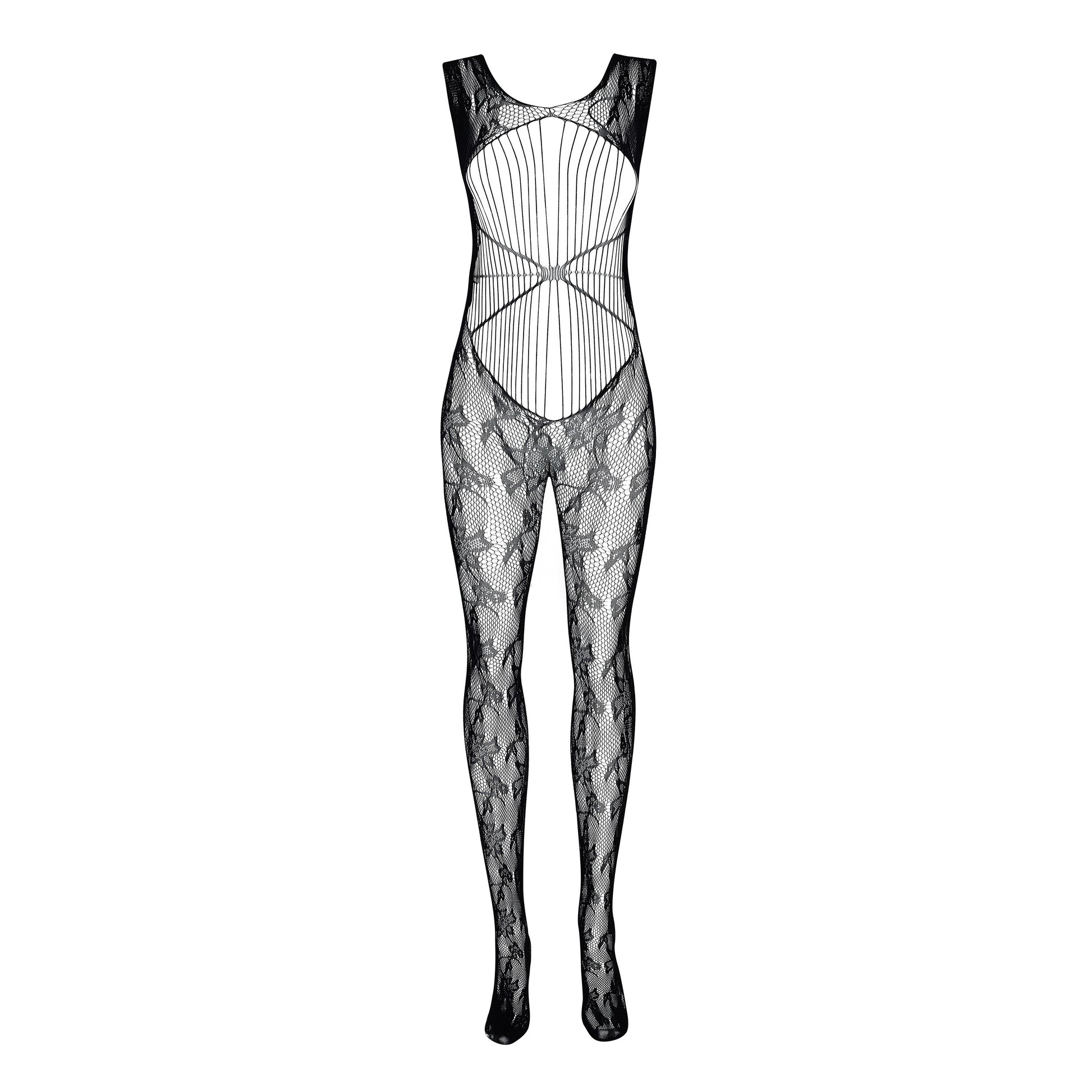 Sexy, very feminine bodystocking made from lace mesh with a romantic floral pattern, The front and back are made from delicate spider web of thin elastic straps.