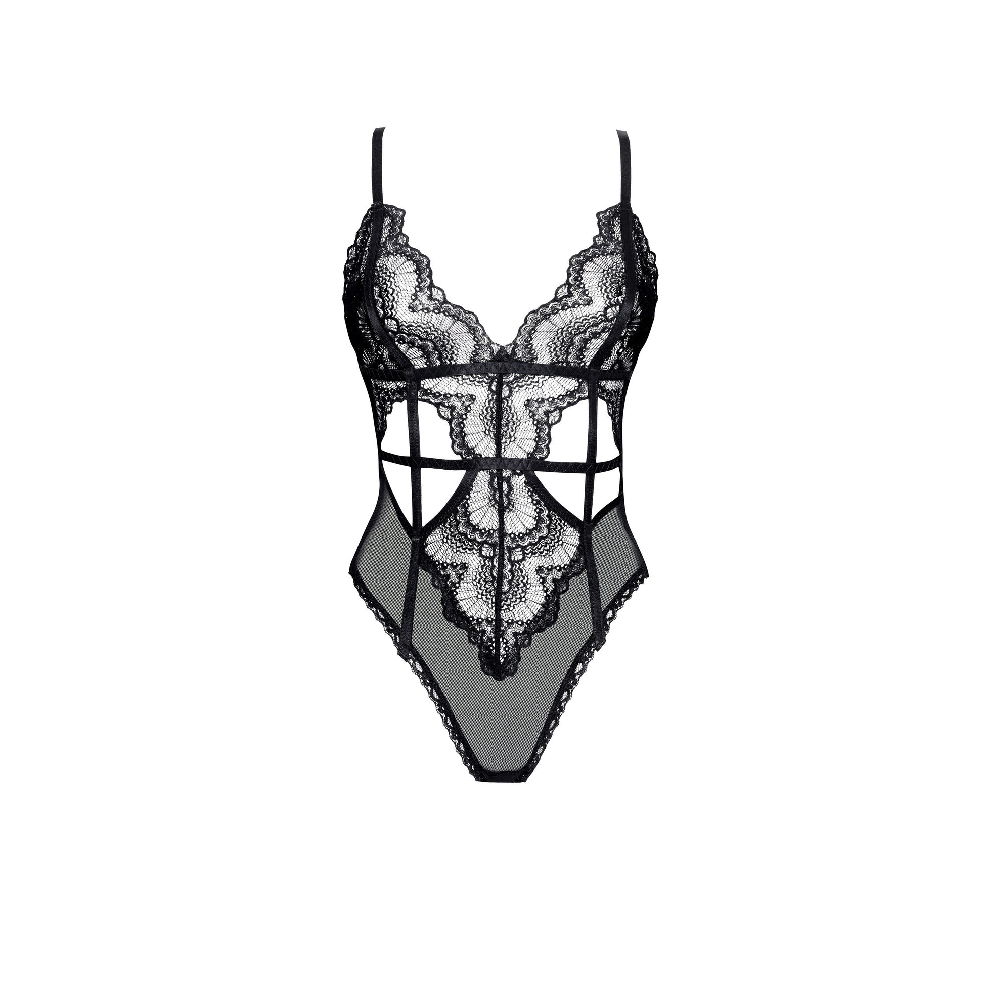 The Peyton Teddy is an elegant and sensual bodysuit that emphasises your femininity and confidence. Made from delicate, transparent lace and mesh, this teddy is synonymous with luxury and sex appeal. The deep cut-outs and carefully designed details ensure that every woman will feel special in it.
