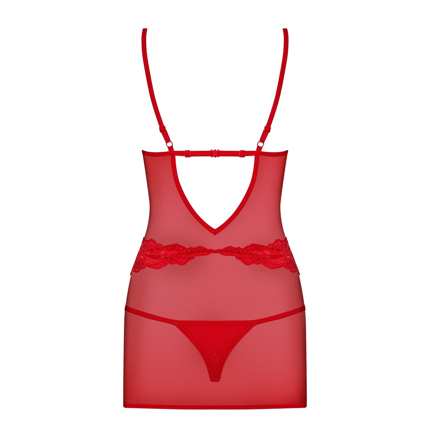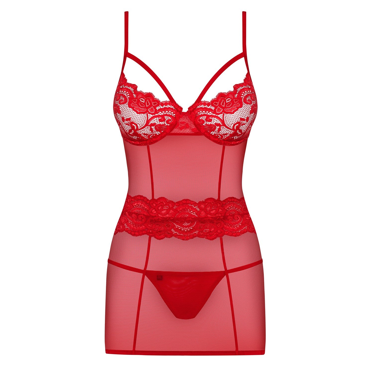 OBSESSIVE 829-CHE CHEMISE AND THONG RED