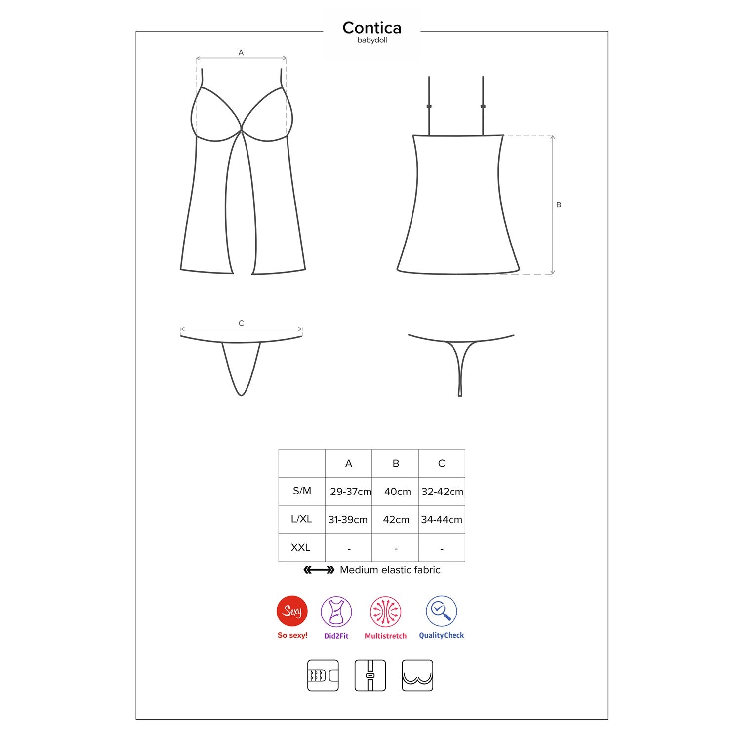 This captivating babydoll set is ideal for special occasions or simply to add a bit of luxury to your everyday life. Don't miss the chance to elevate your intimate wardrobe—order the OBSESSIVE CONTICA BABYDOLL AND THONG BLACK today and embrace the elegance it offers!